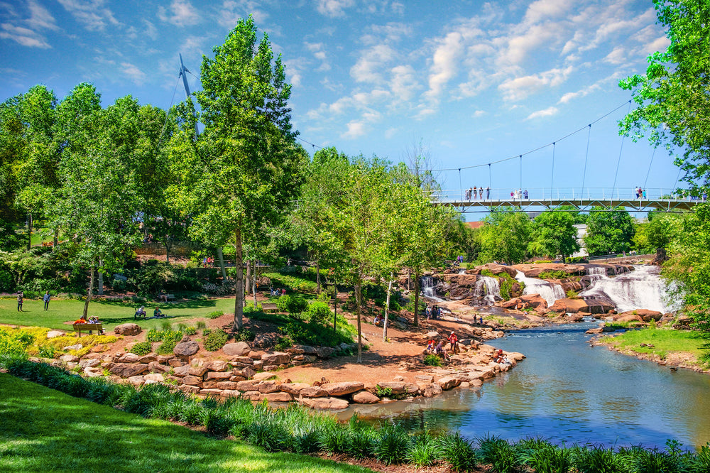 Hundreds of restaurants run the gamut from old-school comfort foods to simple yet elegant fare. Murals and other public art abound, particularly downtown (including the nine bronze mice sculptures scattered on Main Street who encourage scavenger hunts). And smack in the middle of downtown is Falls Park on the Reedy, a 32-acre greenspace with a series of stairstep, shimmering cascades as its focal point.